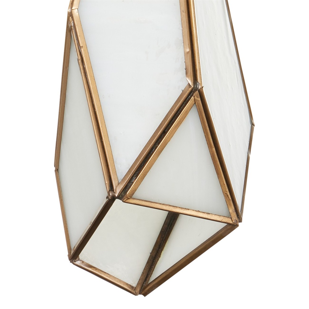 The faceted shades of the Glace White 30-Light Multi-Drop Pendant are made of panes of white art glass joined with seams of metal in an antique brass finish. The organic shape of the shades and the fact they hang at differing heights enhance the personality of this white pendant, which will ornament a space like a piece of jewelry. Art glass is one of the most artisanal materials that can be used, as its swirling opaque surface creates a milky glow whether lights are switched on or not. The canopy of this piece is luminous in a painted silver finish. This fixture is among Currey & Company's multi-drop pendant collection, which includes multiple configurations.