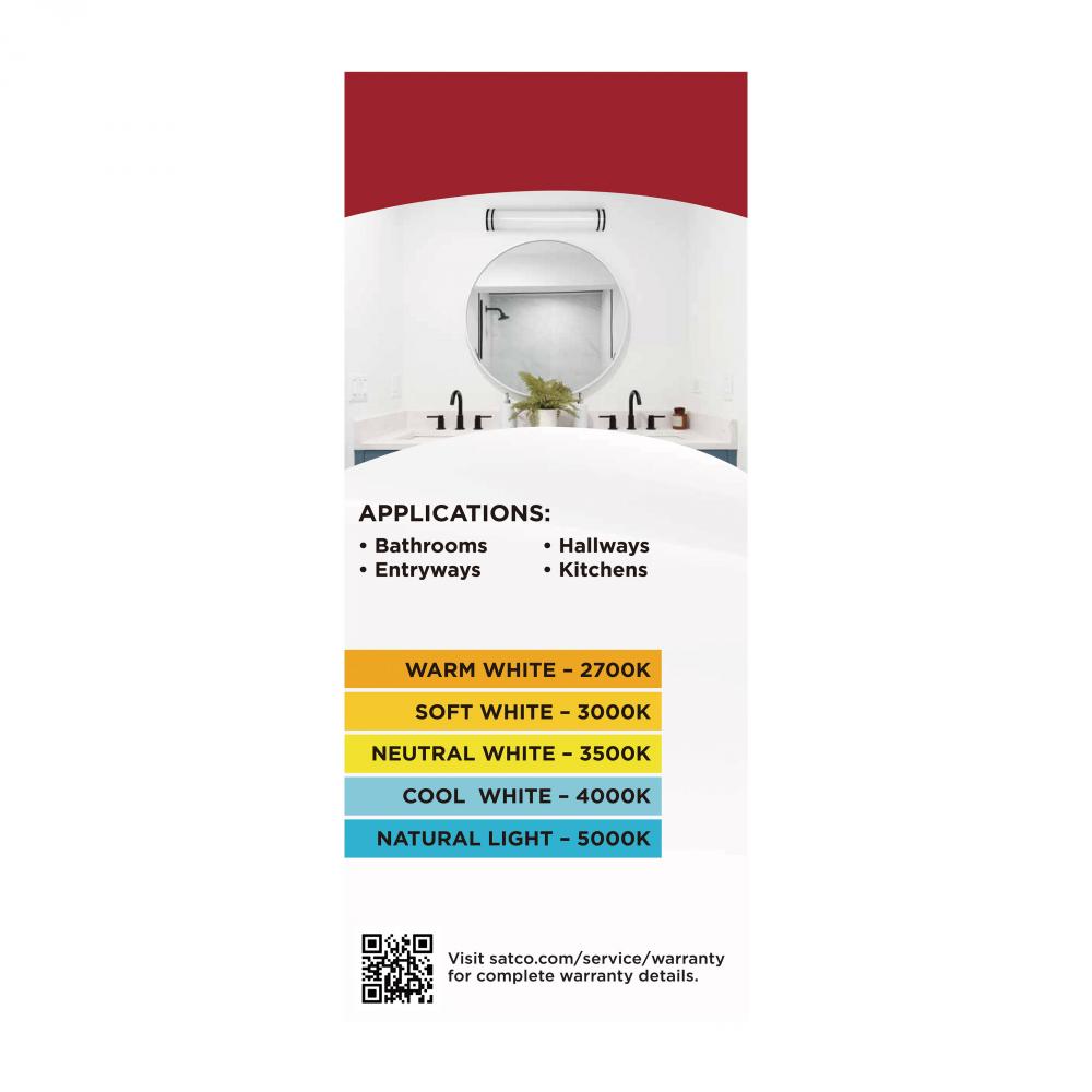 The SATCO NUVO Glamour and Crispo LED collections offer sleek, sophisticated lighting with 5 CCT selectable technology (2700K–5000K) and 90 CRI illumination. The Crispo Collection, available in White, includes 25-inch and 49-inch vanity fixtures and a wa