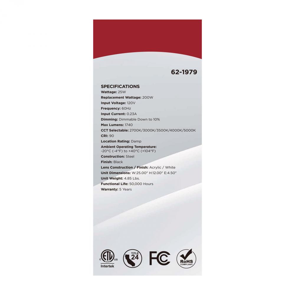 The SATCO NUVO 62-1979 Glamour 25-inch Linear Fixture in white with a black finish offers sleek, modern lighting with 5 CCT selectable technology (2700K–5000K) and 90 CRI illumination for vibrant color rendering. This 25-watt fixture replaces 200W incand