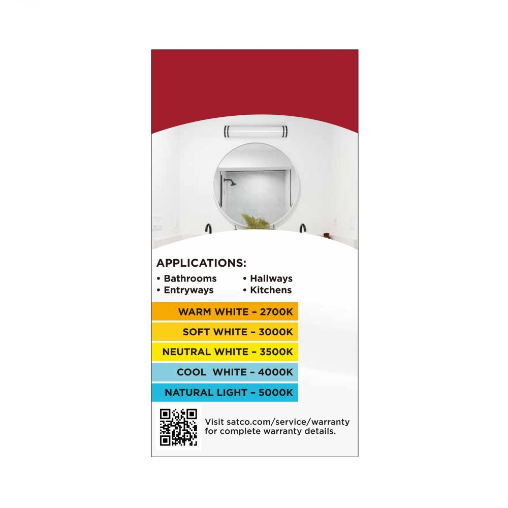 The SATCO NUVO 62-1971 Glamour 25-inch Vanity Fixture in white with a black finish offers sleek, modern lighting with 5 CCT selectable technology (2700K–5000K) and 90 CRI illumination for vibrant color rendering. This 25-watt fixture replaces 200W incand