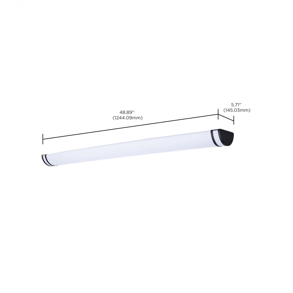 The SATCO NUVO 62-1972 Glamour 49-inch Vanity Fixture in white with a black finish combines sleek design with 5 CCT selectable technology (2700K–5000K) and 90 CRI illumination for superior color rendering. This 50-watt fixture replaces 300W incandescent