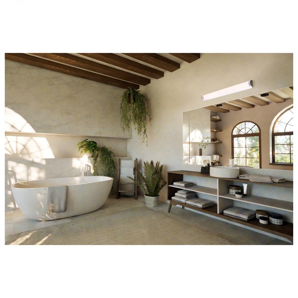 The SATCO NUVO Glamour and Crispo LED collections offer sleek, sophisticated lighting with 5 CCT selectable technology (2700K–5000K) and 90 CRI illumination. The Crispo Collection, available in White, includes 25-inch and 49-inch vanity fixtures and a wa
