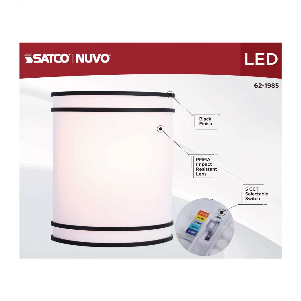 The SATCO NUVO 62-1985 Glamour Wall Sconce in white with a black finish delivers sleek, modern lighting with 5 CCT selectable technology (2700K–5000K) and 90 CRI illumination for vibrant color rendering. This 10-watt fixture replaces 80W incandescent lig