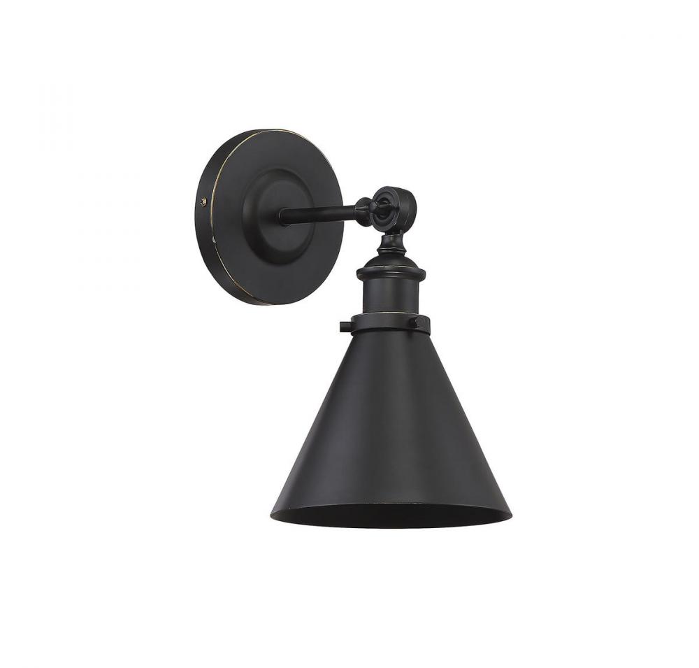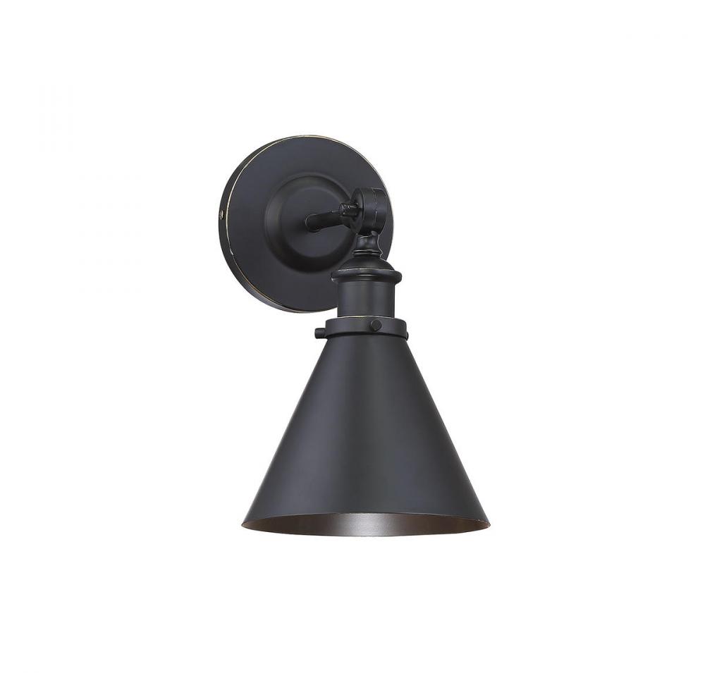 Set a dramatic mood with the Glenn wall sconce. Whether you want the industrial-inspired chic of an old noir film or the simple serenity of a country homestead novel, this fixture perfectly creates a classic scene right in your own home. The uncluttered details of the arm hardware and conical metal shade are an ideal fit for transitional, modern vintage, urban farmhouse, industrial or loft-like decor styles. A high-quality classic bronze finish looks terrific now and for years to come. The fixture is 7” wide by 12” high and holds a 60W standard size bulb. Plus, it’s adjustable because you can tilt the shade to place the light exactly where you want it. You’ll love the way this sconce’s subtle sophistication and streamlined casual style sets the stage in your living space.