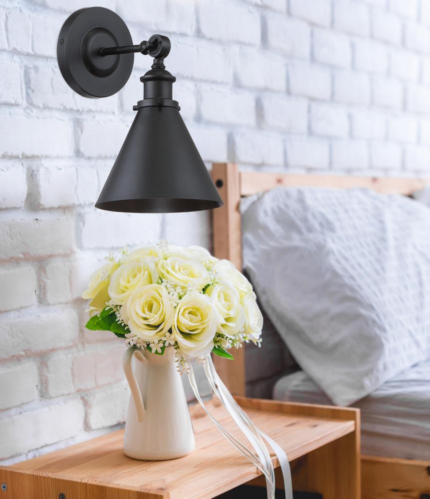 Set a dramatic mood with the Glenn wall sconce. Whether you want the industrial-inspired chic of an old noir film, or the simple serenity of a country homestead novel, this fixture perfectly creates a classic scene right in your own home. The uncluttered details of the arm hardware and conical metal shade are an ideal fit for transitional, modern vintage, urban farmhouse, industrial, or loft-like decor styles. A high-quality dark bronze finish looks terrific now, and for years to come. The fixture is 7” wide by 12” high and holds a 60W E-style bulb. Plus, it’s adjustable: you can tilt the shade to place the light exactly where you want it. You’ll love the way this sconce’s subtle sophistication and streamlined casual style sets the stage in your living space.