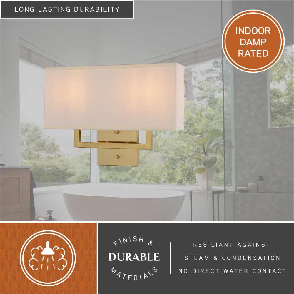 Glenview 15-in. W 2 Light Wall Light Satin Brass