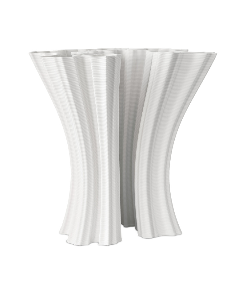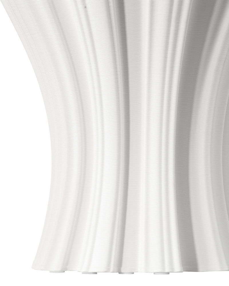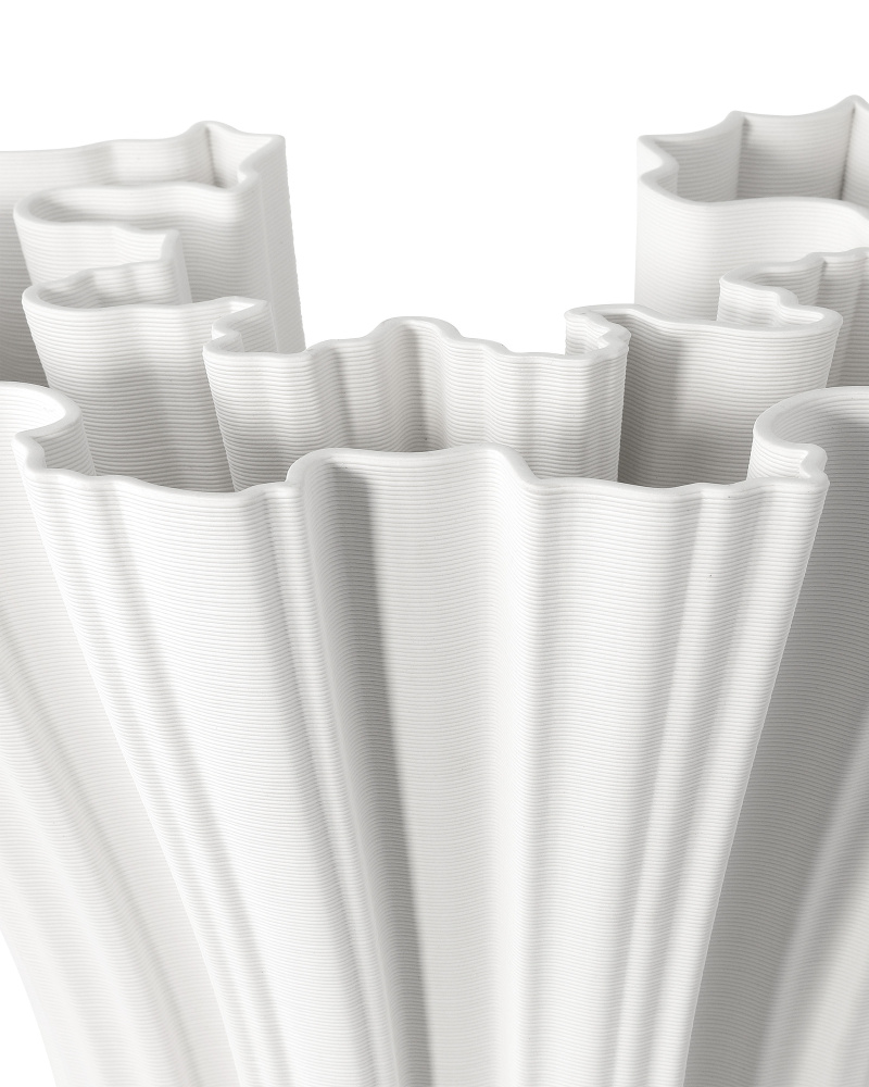 The Godet White Vase is a technological feat. The deep furrows that wrinkle around the form to create waves of movement are achieved with such a uniformity they can only be machine-made. The most surprising thing about this handsome vessel is that it is made of 3D-printed porcelain, an ancient material you might not expect to be so amenable to such a modern process.