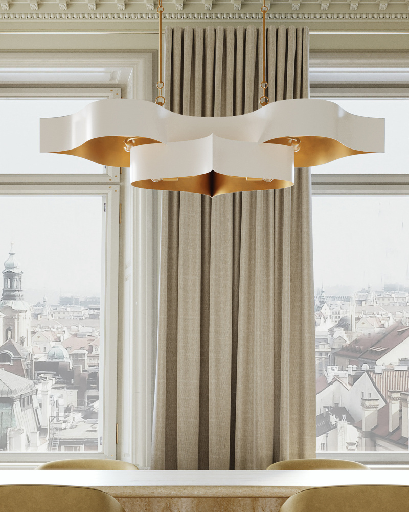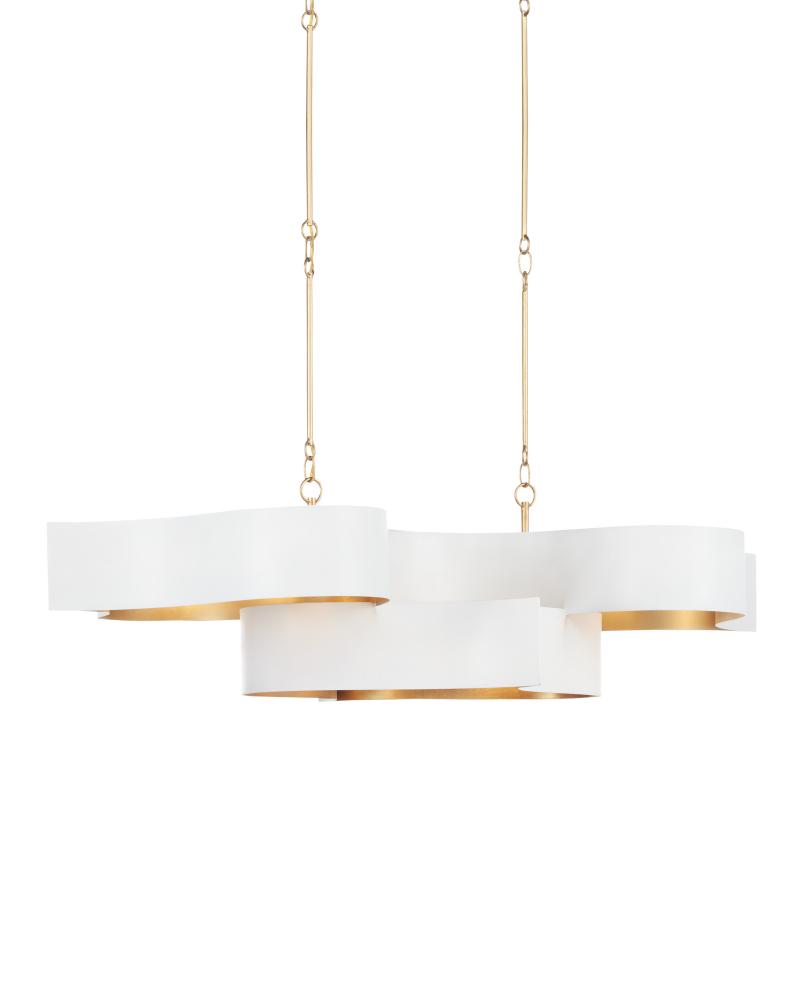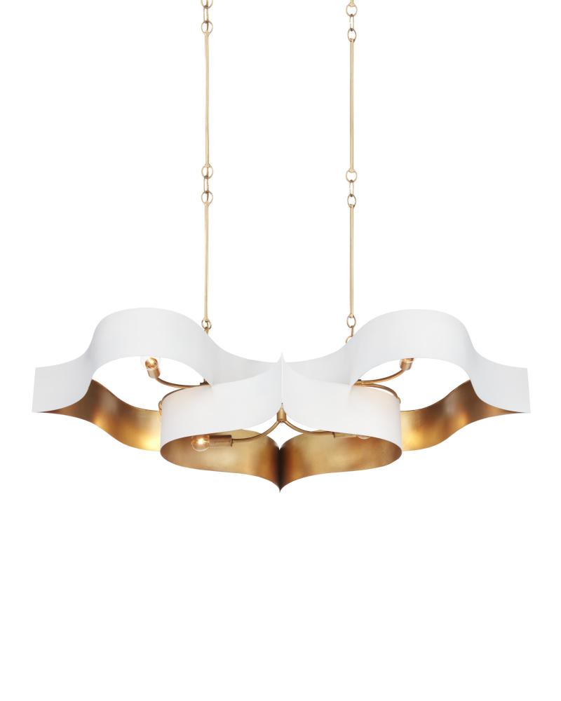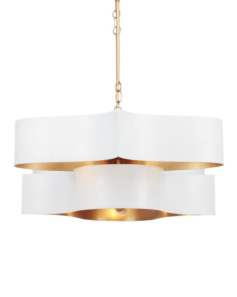 The Grand Lotus White Oval Chandelier receives its majestic good looks from a combination of stunning workmanship and a mix of sugar white and contemporary gold leaf finishes. The white chandelier is skillfully fashioned from wrought iron. Adjustable from 17" to 58" with use of included chain/rod kit/cable. If your space calls for a longer drop, additional chain/rods/cable is available for purchase.