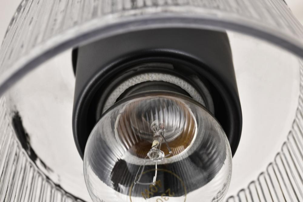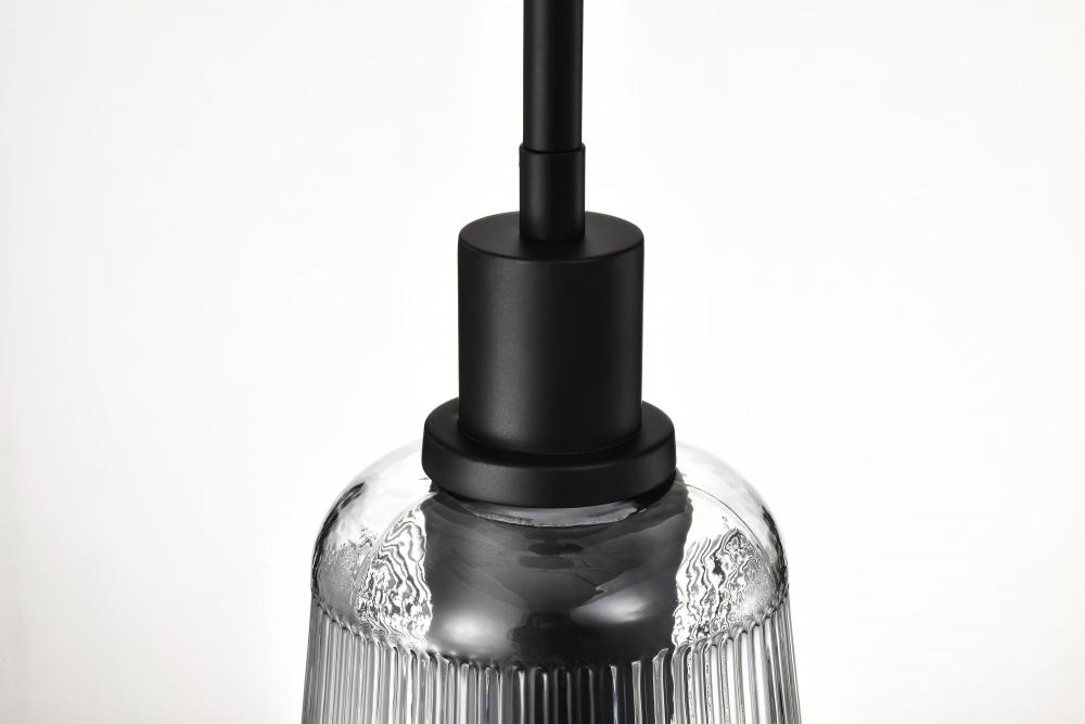 Grayson; 1 Light Mini Pendant; Matte Black Finish; Clear Ribbed Glass