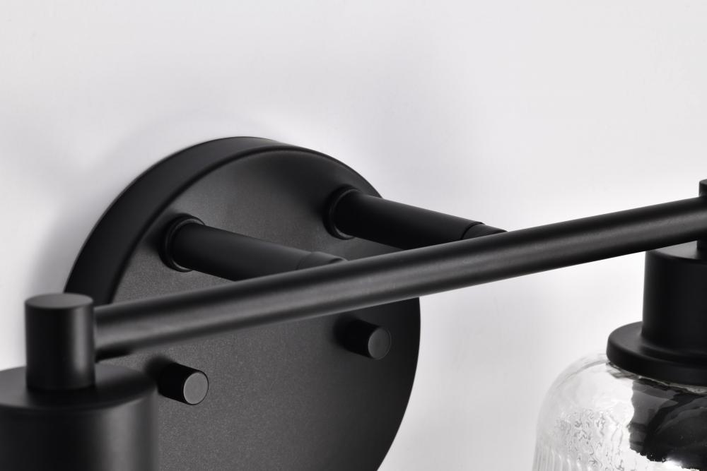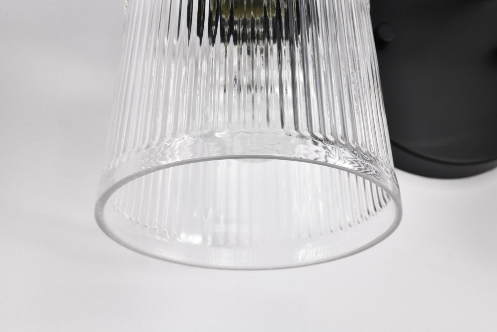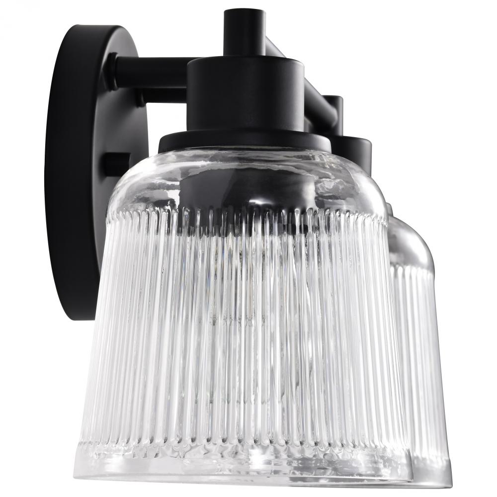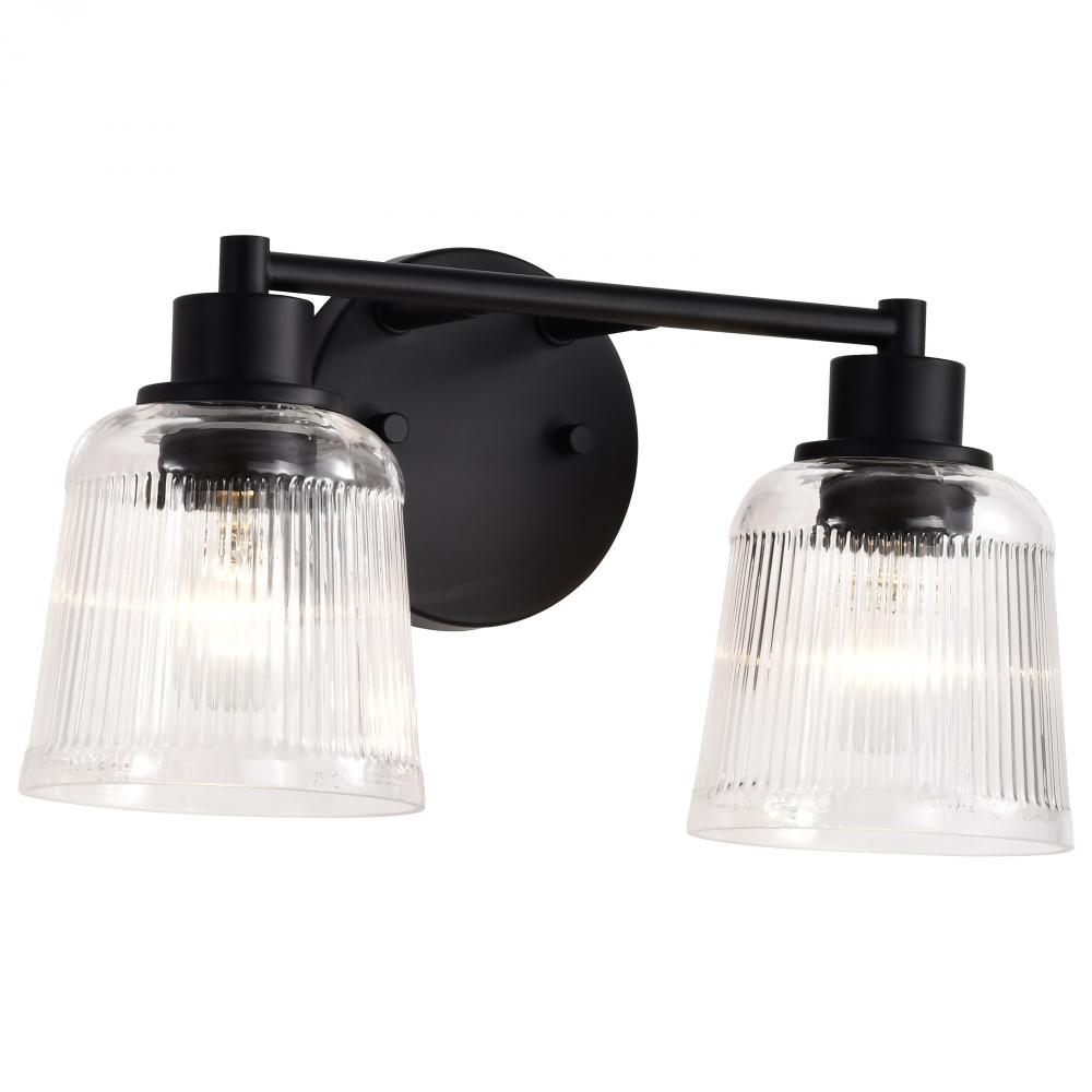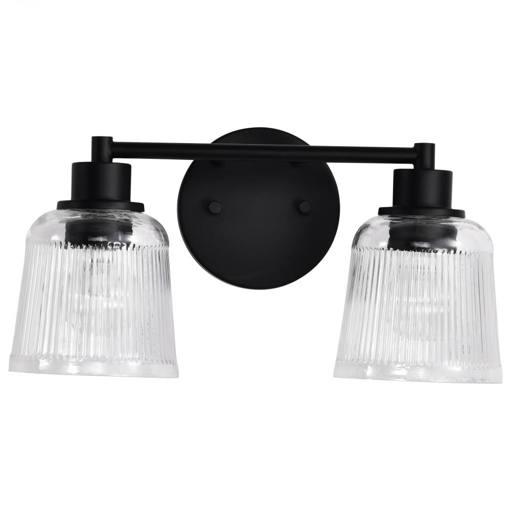Grayson; 2 Light Vanity; Matte Black Finish; Clear Ribbed Glass
