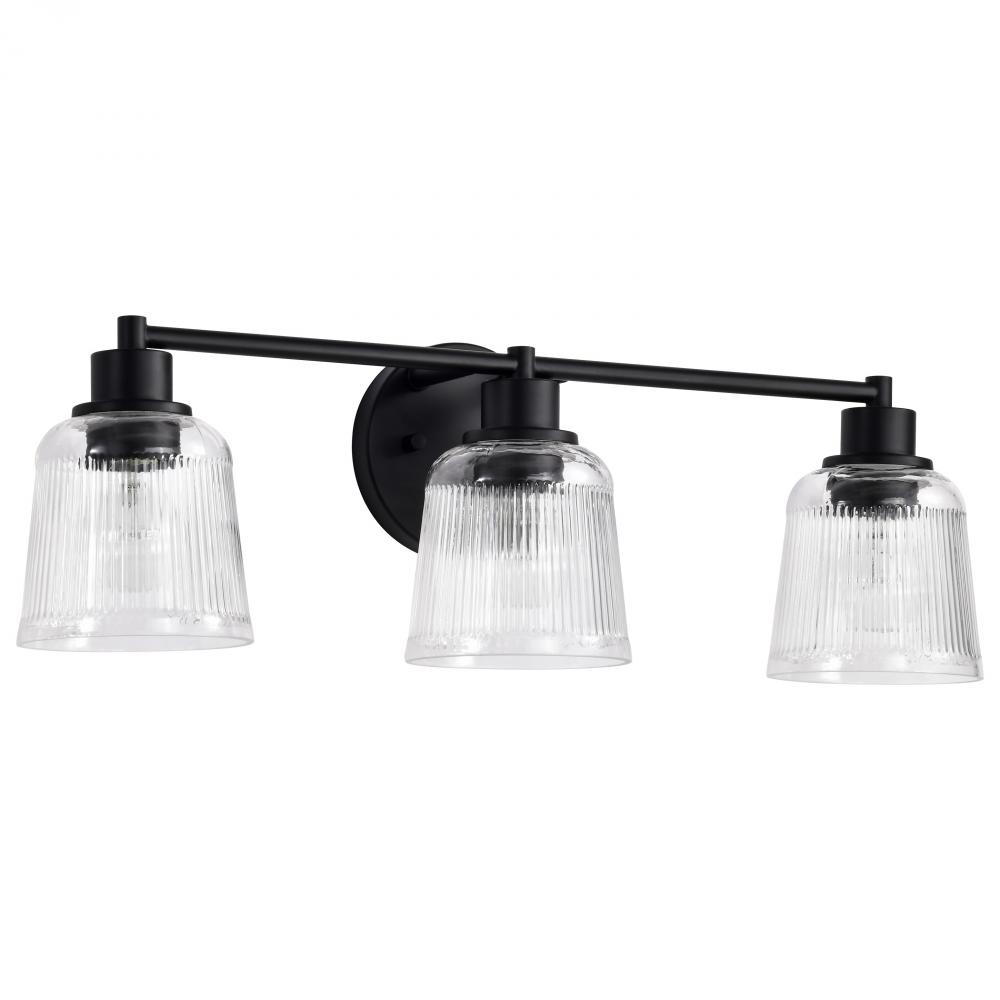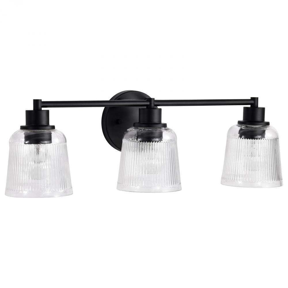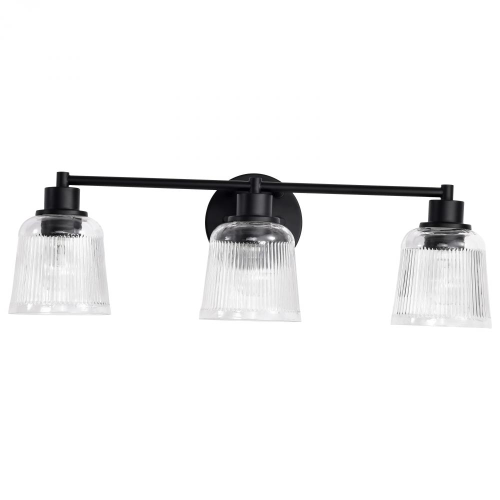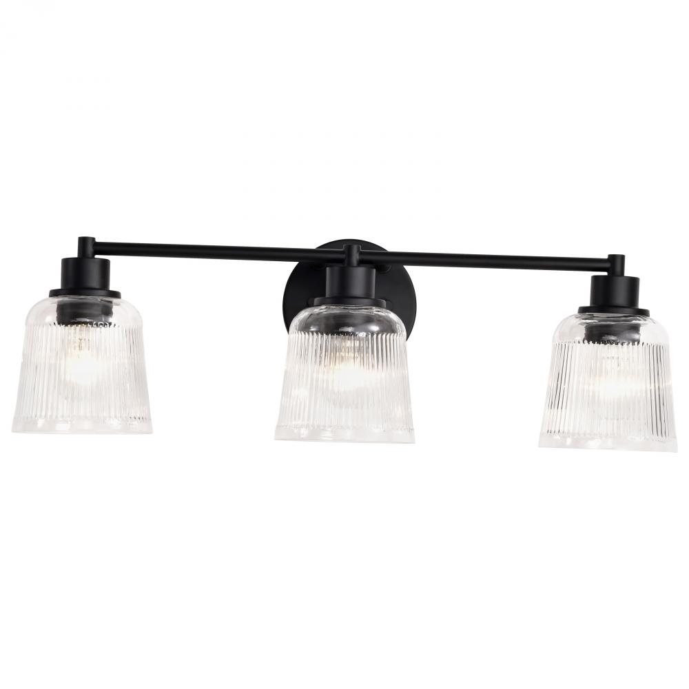 Grayson; 3 Light Vanity; Matte Black Finish; Clear Ribbed Glass