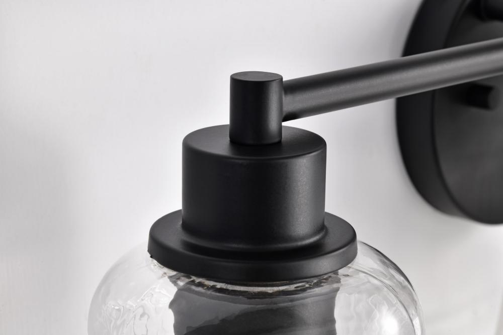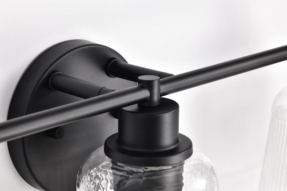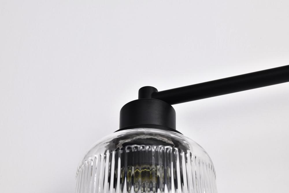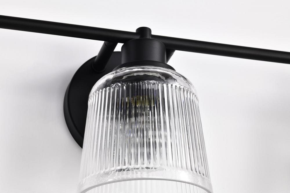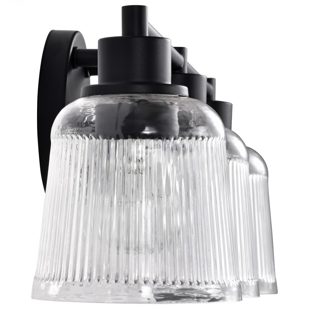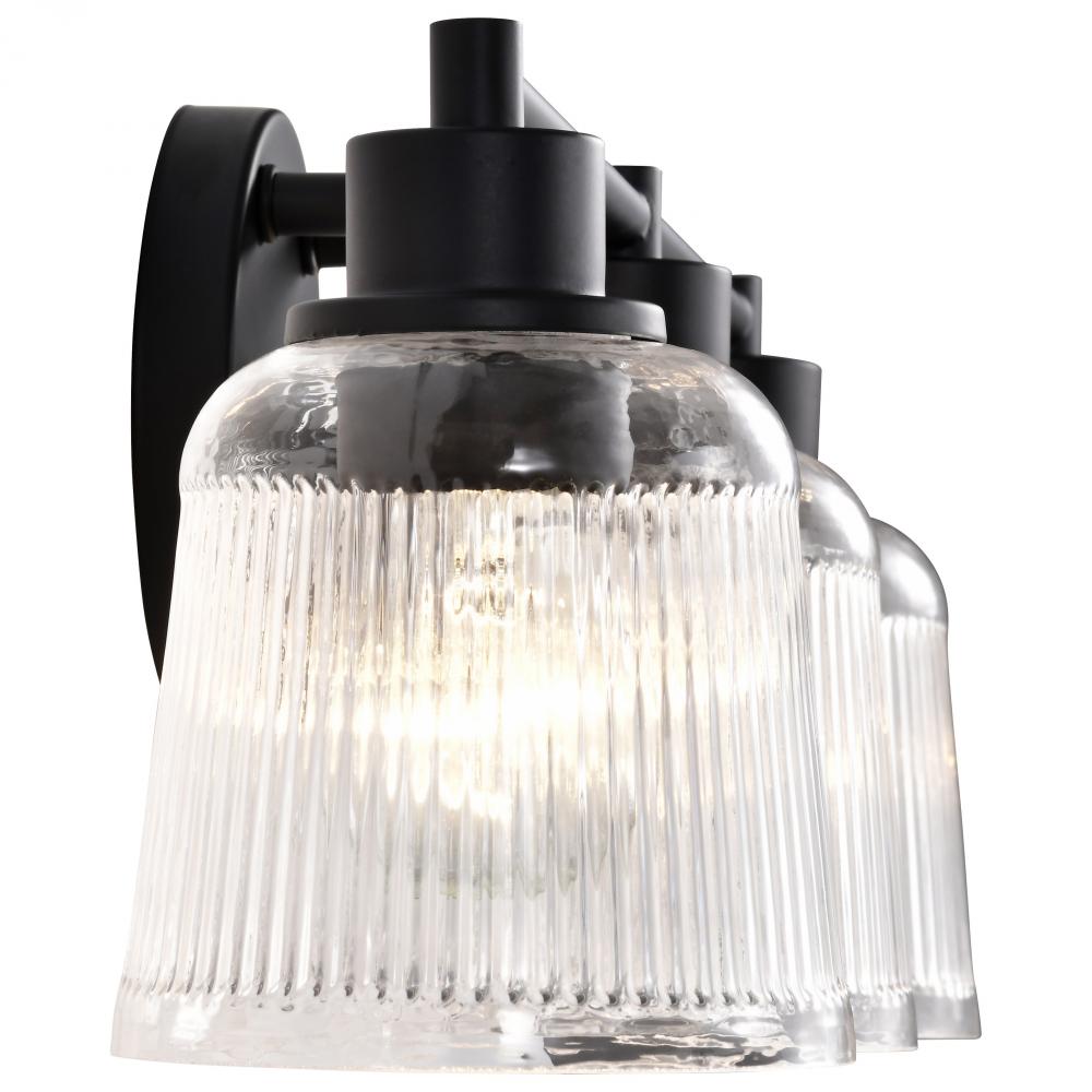 Grayson; 3 Light Vanity; Matte Black Finish; Clear Ribbed Glass
