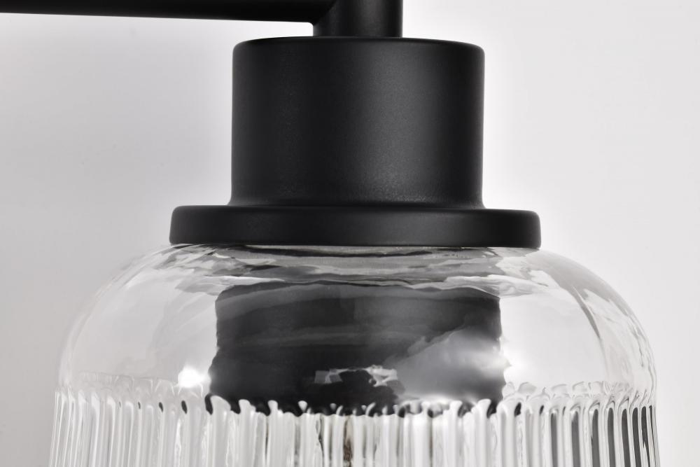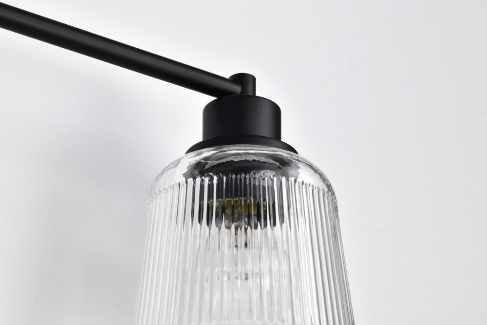 Grayson; 4 Light Vanity; Matte Black Finish; Clear Ribbed Glass