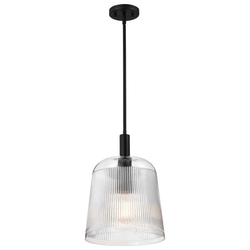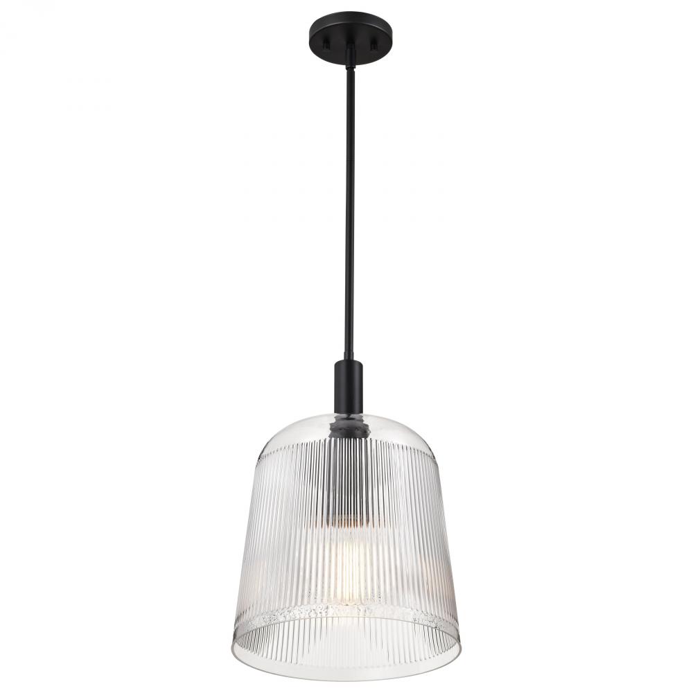 Grayson; Large Pendant; Matte Black Finish; Clear Ribbed Glass