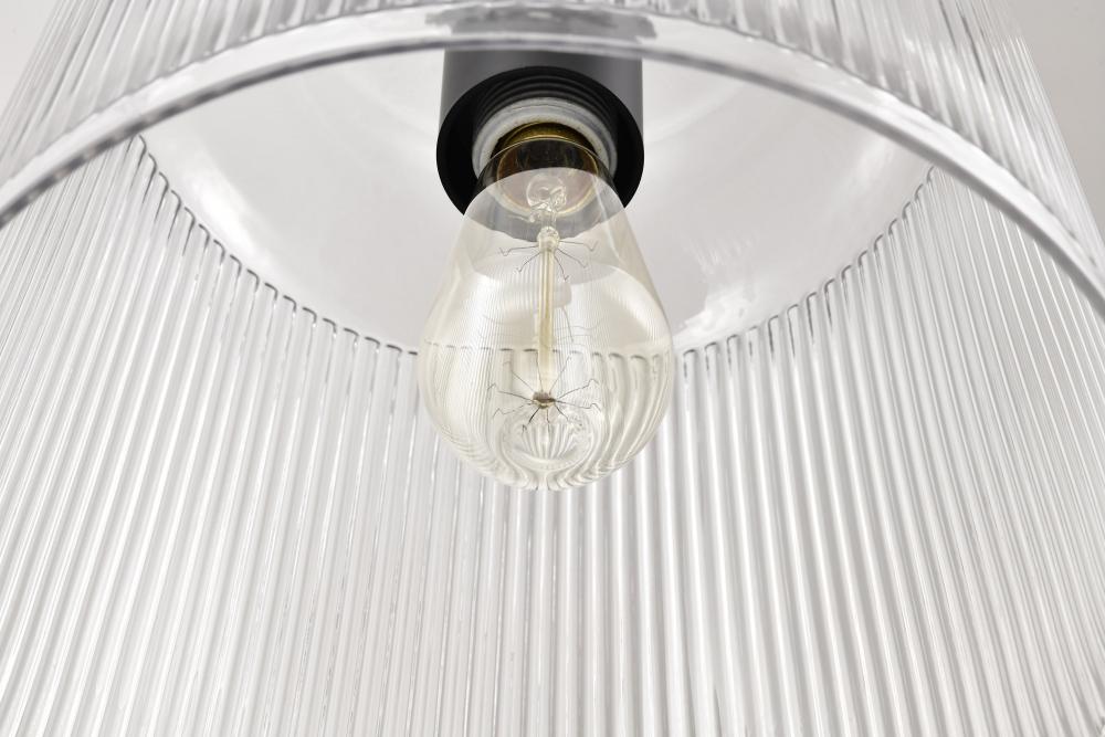 Finished inMatte Black with Clear Ribbed Glass