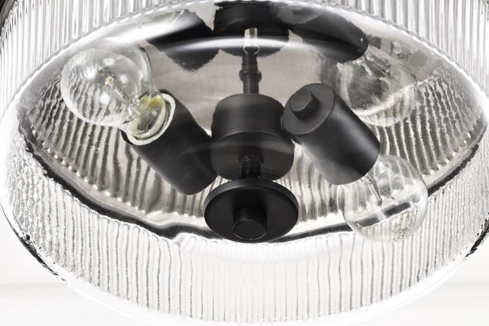 Grayson; Small Flush Mount; Matte Black Finish; Clear Ribbed Glass