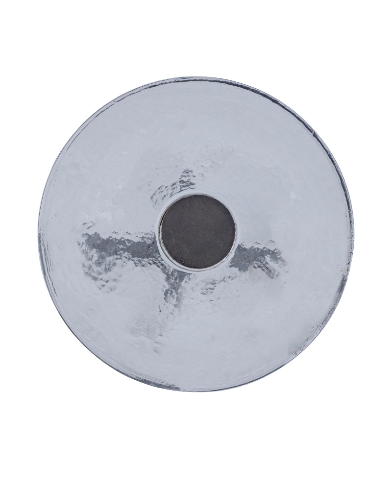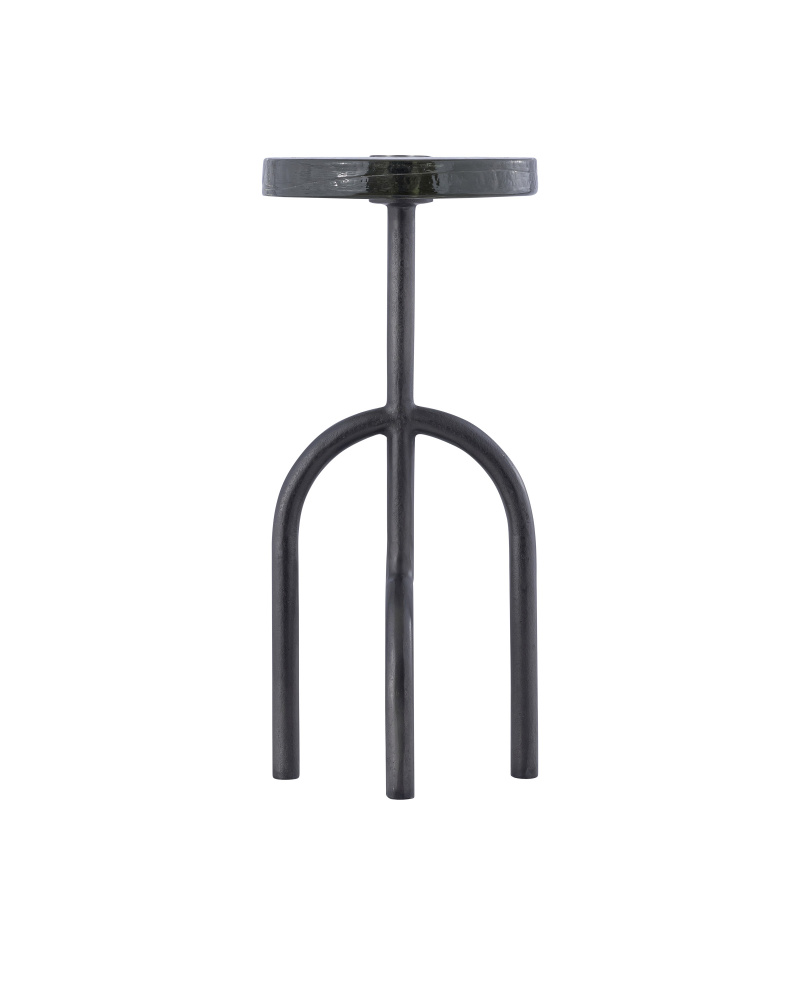 The Grove Drinks Table has legs designed to be a clean, contemporary version of mangrove roots. The aluminum shape in a black nickel finish holds a cast glass top that is extremely artisanal given it is made by hand in a mold. This artisal effect brings this black drinks table a strong appeal for such a small piece of furniture.