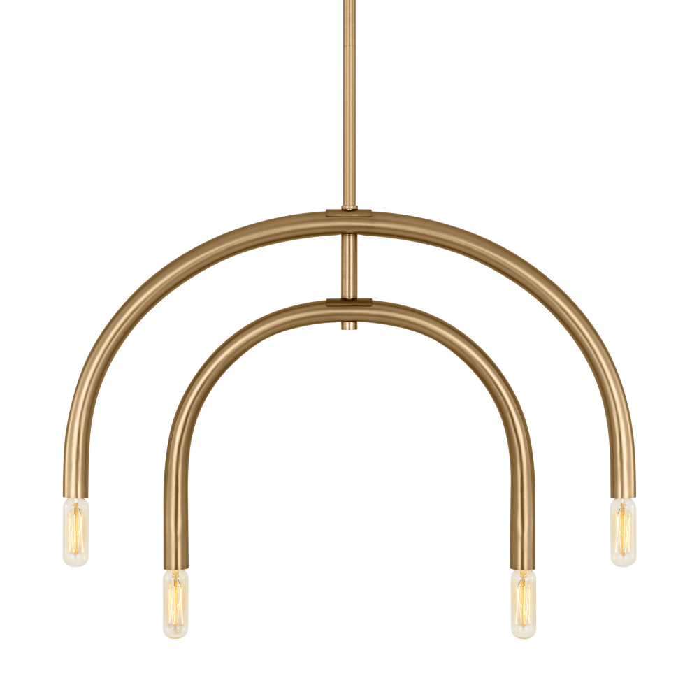 Add a modern statement with this unique chandelier. Hadden's mobile-like form allows you to adjust the arcing arms for an arrangement of your design. Playfully proportioned center hub and two finish options give this series plenty of elegant contrast.