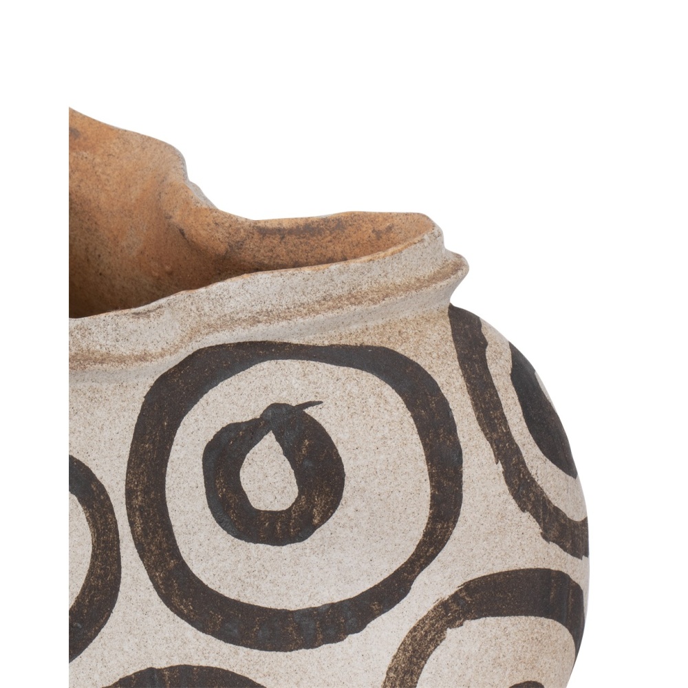 The Han Dynasty Bowl is poetry in motion, and not just because its asymmetrical form creates a sense of movement but because the swirling brushstrokes along its porcelain surface do as well. The tan vessel is created by a studio artist and, because it is handmade, each one will vary slightly to make each piece unique — some will be brighter and, because the brush patterns are hand-painted, they will be random from piece to piece.