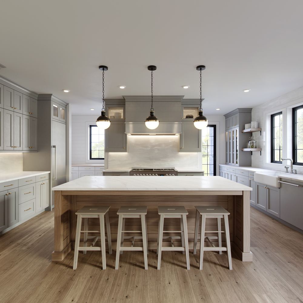 Modern, contemporary, damp-rated fixture will complement any dining room, kitchen, or foyer