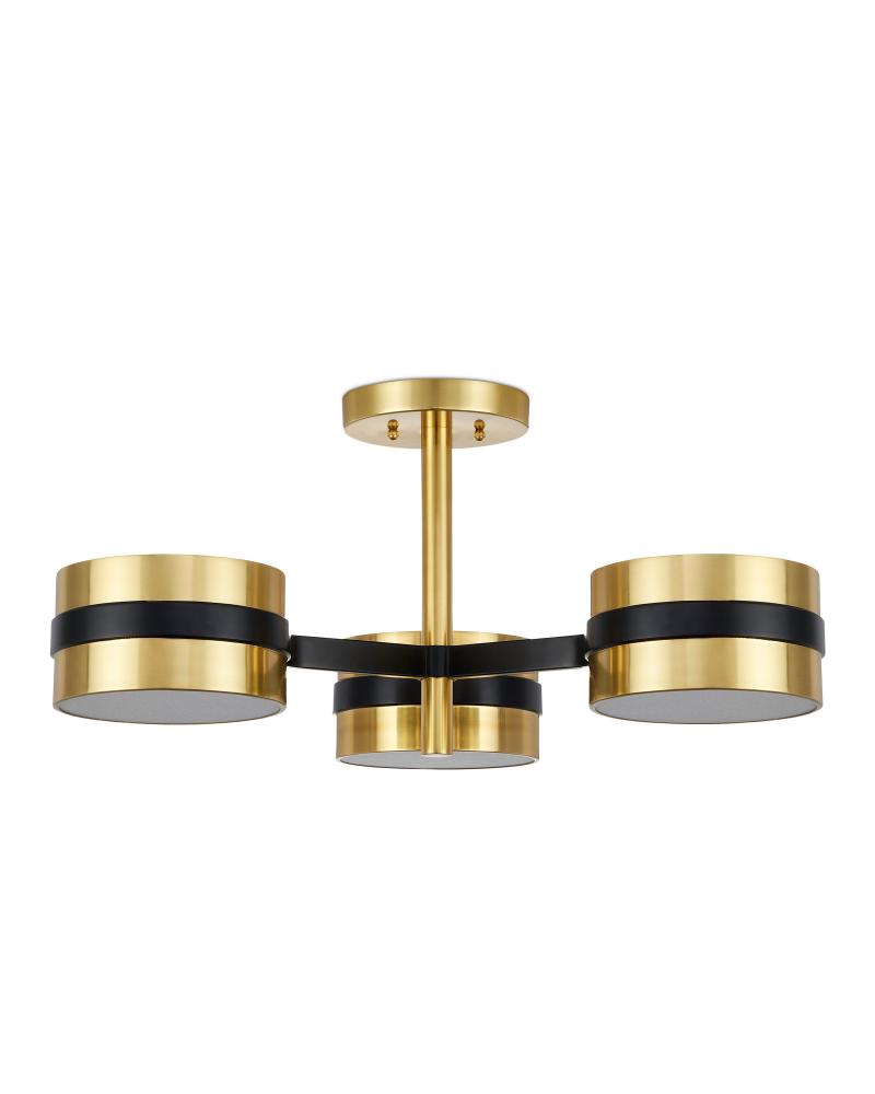 Taking its cues from mid-century modern design, the Heybrook Semi-Flush Mount reflects the sensibilities of that lauded era. Made of metal in a mix of black and polished brass finishes, the gold semi-flush is fitted with integrated LED technology that is softened by white diffusers at the bottom of each of the three circlets holding the bulbs.