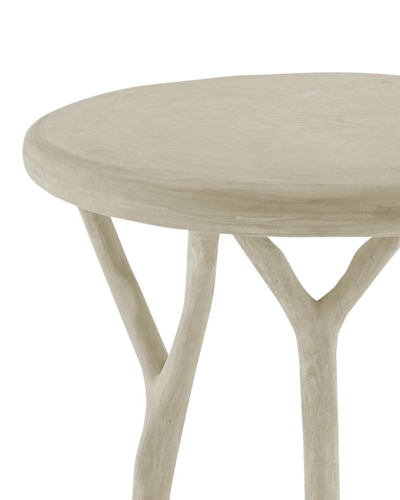 The Hidcote Small Accent Table is made from the traditional technique of faux bois perfected by the French, which involves hand-applying concrete over a metal frame. This concrete accent table in a warm faux bois natural finish can be placed indoors or out.