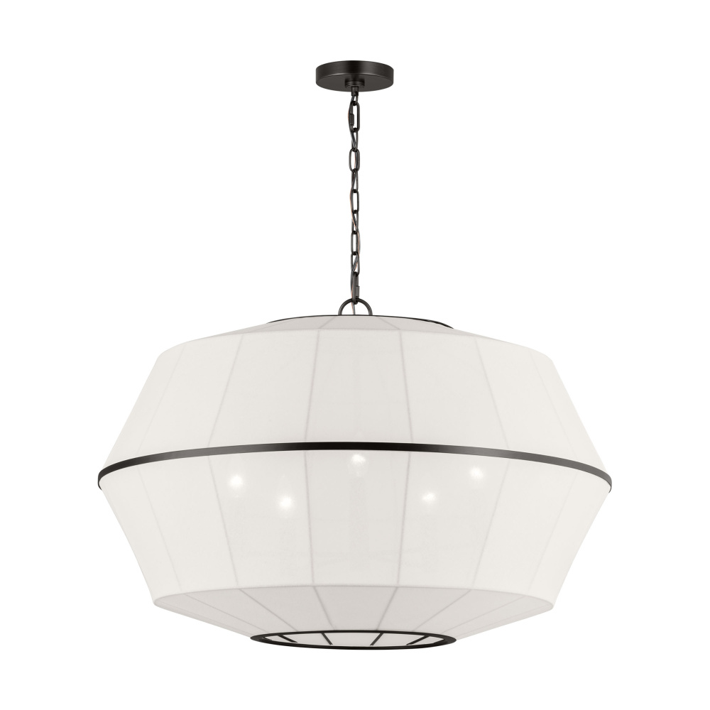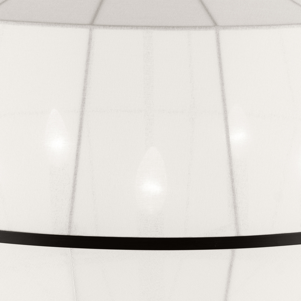 Crafted with Steel in a Aged Iron finish with white linen shades
