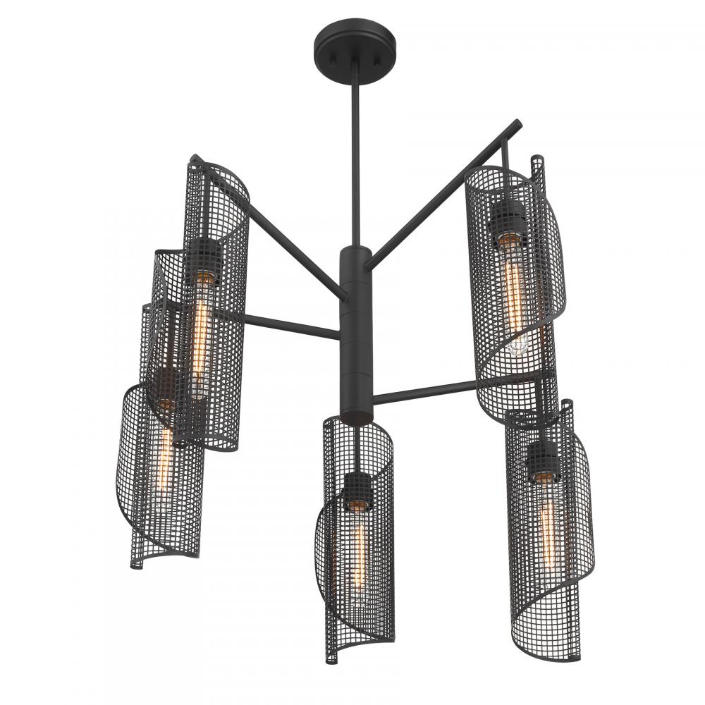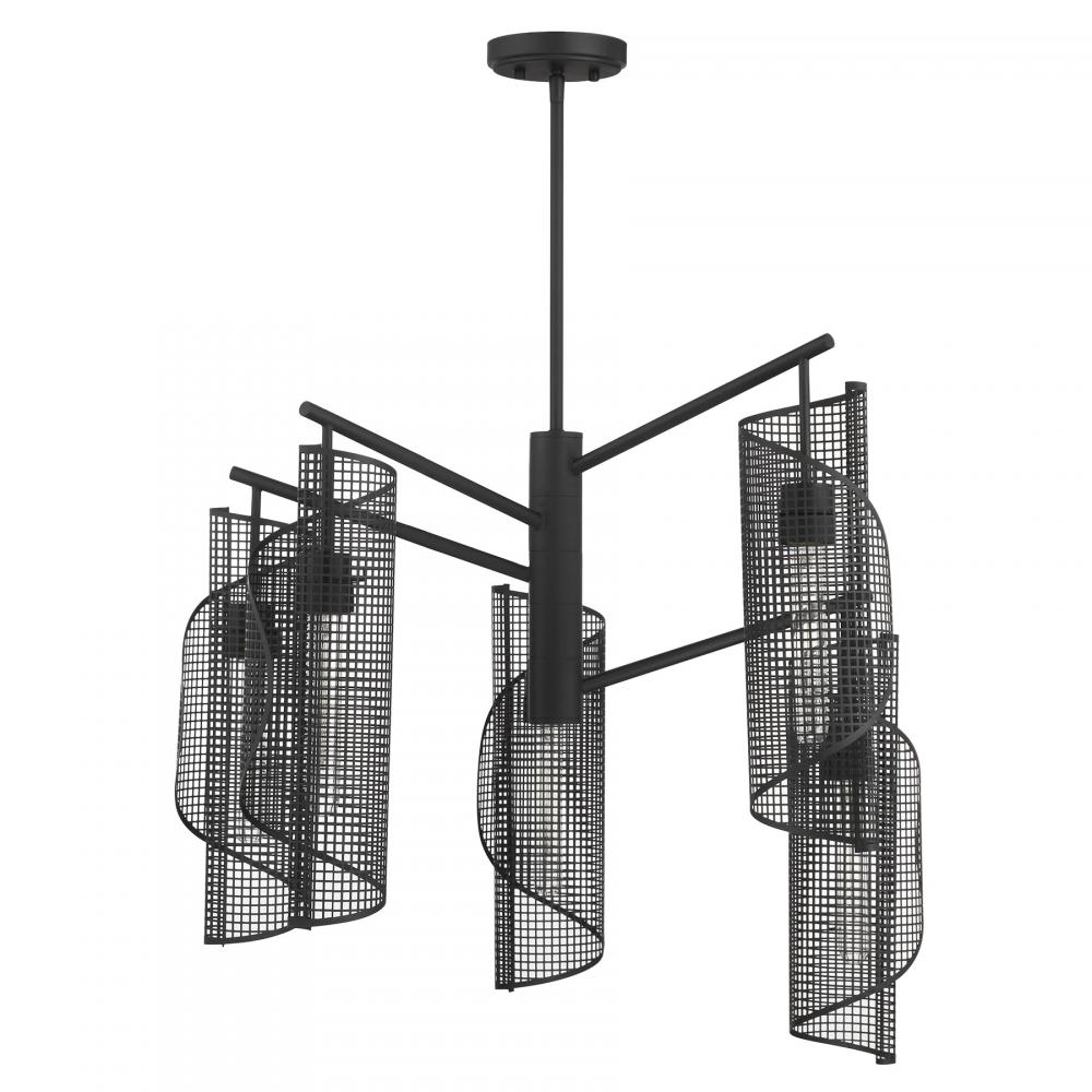 The Savoy House Hillbourne 5-light chandelier showcases ribbons of intriguing urban loft style. Its perforated metal shades, finished in Matte Black, appear to swirl and twirl beautifully. The lights hang down at different heights for added motion and intrigue. Hillbourne is 28” in width and has an adjustable height ranging from 25” to 79”. Uses five standard size bulbs of up to 60 watts per bulb. Bulbs not included. Comes with four 12” downrods and one 6” downrod.