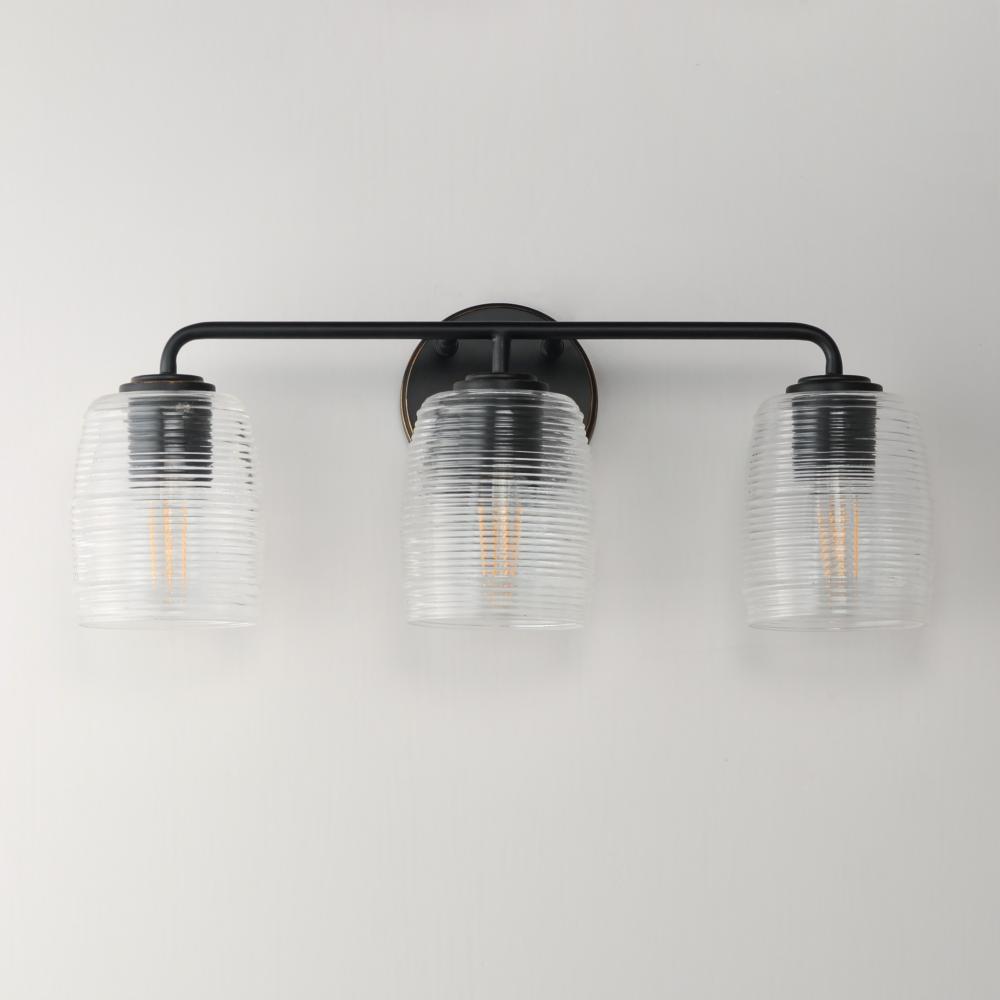 Warm and subtly nostalgic, the Honey collection draws inspiration from vintage honey jars and the familiar grooves of wooden dippers. Delicate ribbing on the clear glass shades plays with the light, creating gentle refractions that echo the soft sweetness