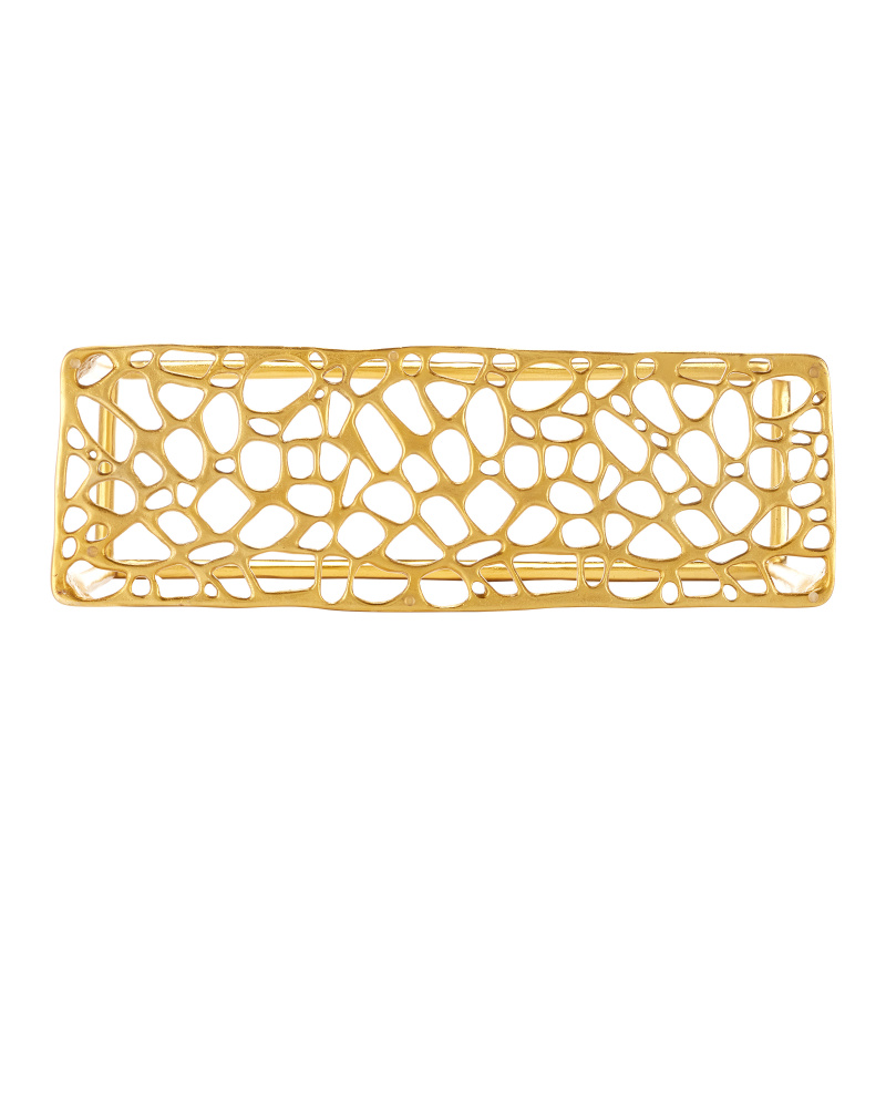 With a shape inspired by surrealism, the Honeycomb Gold Console Table, created by Marjorie Skouras, has an organically interesting profile that features an asymmetrical honeycomb pattern on its top. Made of aluminum in a gold finish, the table will read like a work of art wherever it is placed. Continuing her passion for taking ideas from her surroundings, the initial concept for this piece is the honey harvested from the hives of the stingless Melipona bees that are native to the Yucatan.