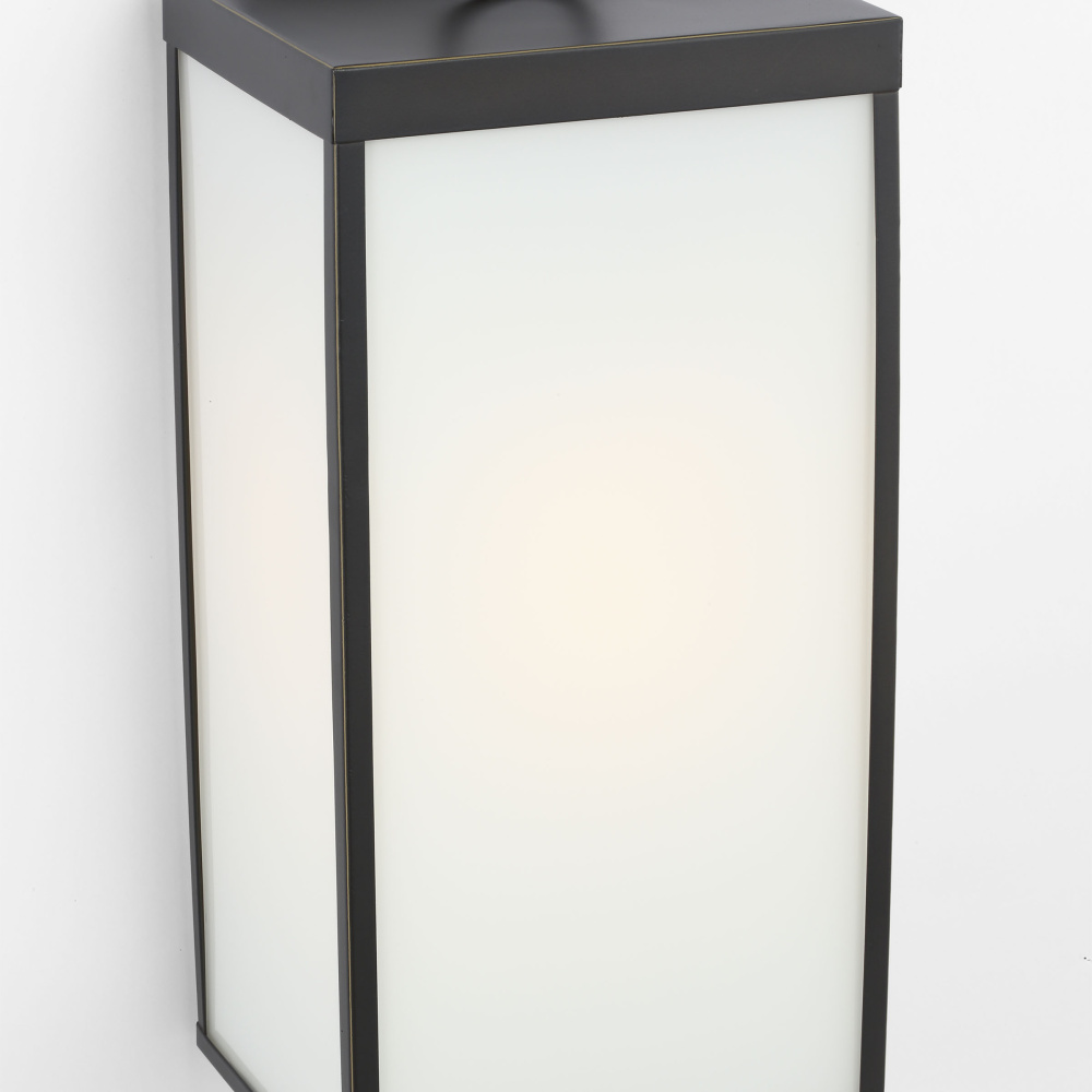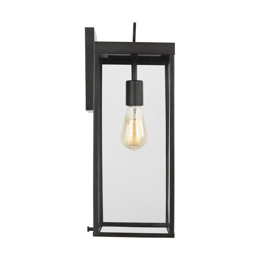 Modern exterior fixture will complement outdoor areas such as garage entries, sheds, or patios