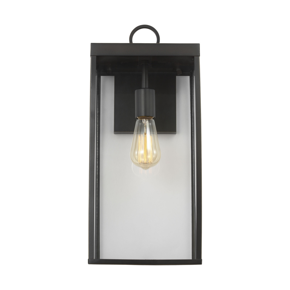 The Drew & Jonathan Howell Outdoor series infuses classic design with clean, contemporary lines. The frame is crafted from weather-resistant aluminum in an Antique Bronze or Textured Black finish for an industrial appeal and a ring detail to complement the design. Inside, Howell features an open bulb base that aims the light out over your space from a single light bulb (sold separately). Clear and opal etched glass ship with this fixture for a more customized look.