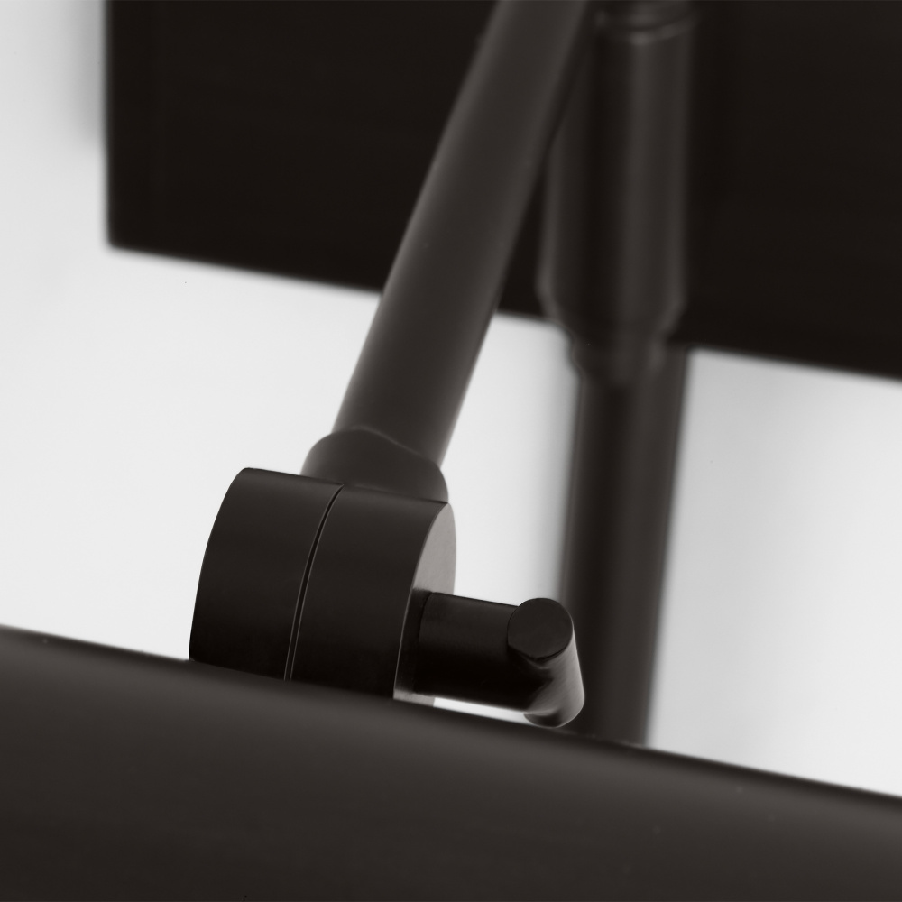 Transitional fixture with pivoting aged iron steel shade will provide light to highlight any piece