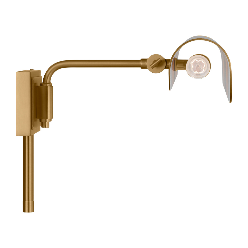 Transitional fixture with pivoting burnished brass steel shade will provide light to highlight any piece