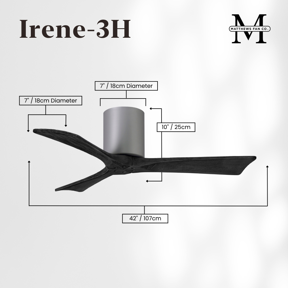 Matthews Fan Company IR3H-BN-GA-42 - Irene-3H - Three Blade Flush Mount Paddle Fan - 42" - Brushed Nickel Finish