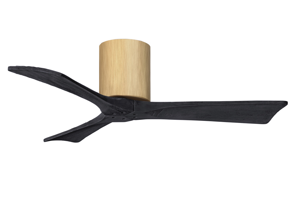 Irene-3H - Three Blade Flush Mount Paddle Fan - 42" - Light Maple Tone Finish -Matte Black Blade