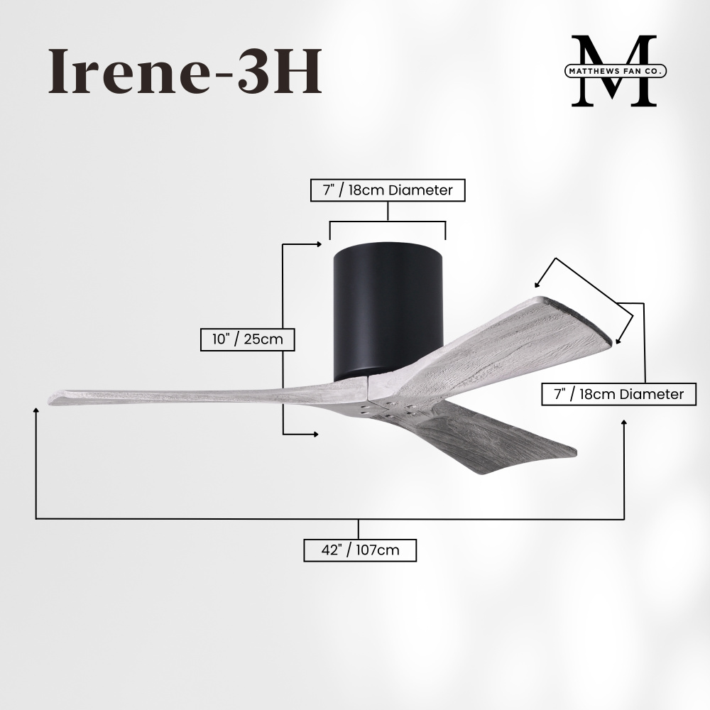 Matthews Fan Company IR3H-BB-LM-42 - Irene-3H - Three Blade Flush Mount Paddle Fan - 42" - Brushed Bronze Finish