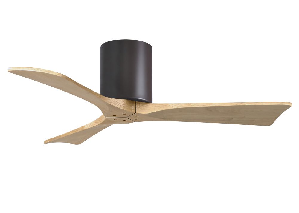 Matthews Fan Company IR3H-LM-BK-72 - Irene-3H - Three Blade Flush Mount Paddle Fan - 72" - Light Maple Tone Finish