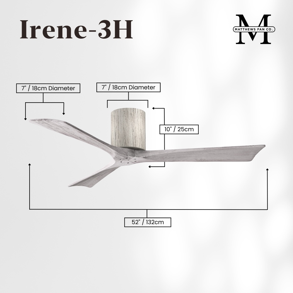 Matthews Fan Company IR3H-WN-LM-52 - Irene-3H - Three Blade Flush Mount Paddle Fan - 52" - Walnut Finish - Light Maple Tone Blades