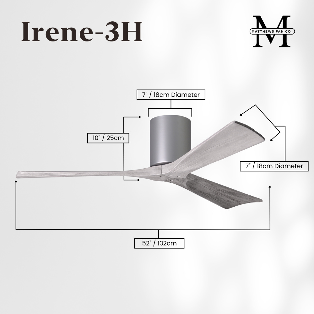 Matthews Fan Company IR3H-WH-GA-52 - Irene-3H - Three Blade Flush Mount Paddle Fan - 52" - Gloss White Finish - Gray Ash Tone Blades