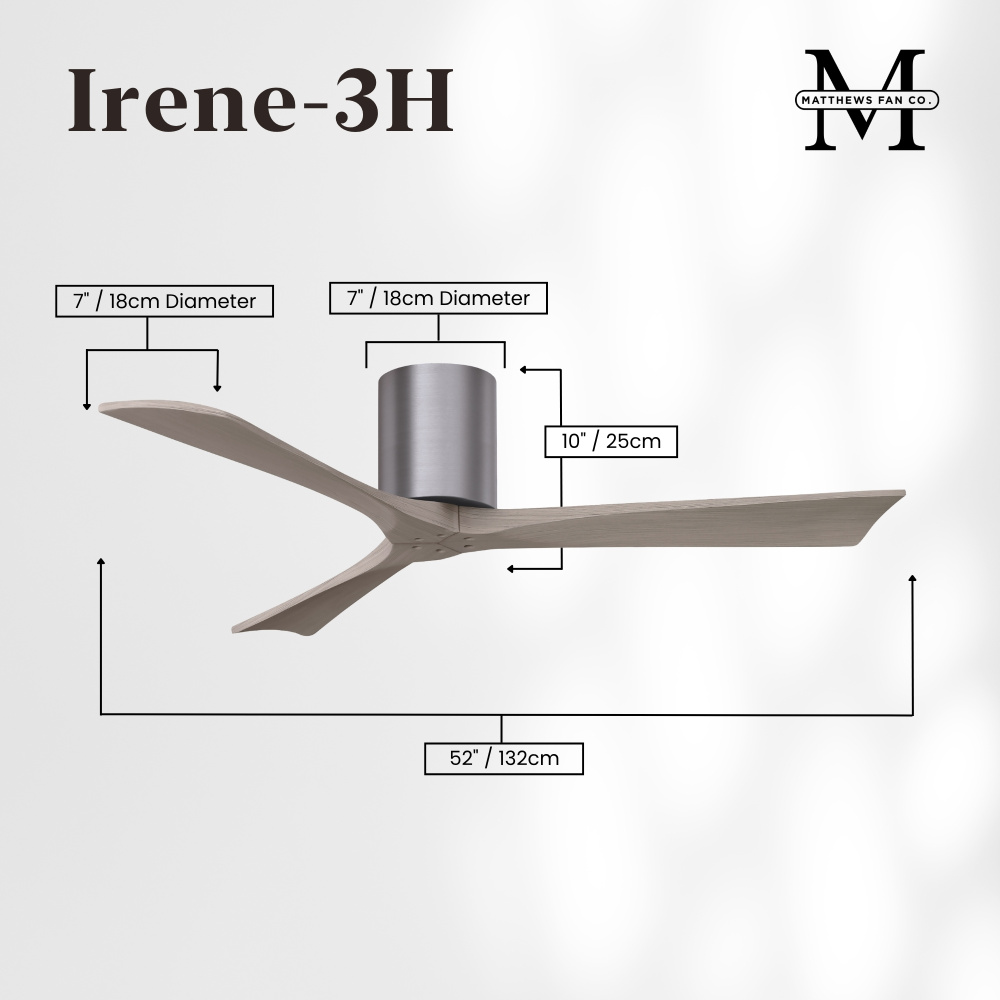 Matthews Fan Company IR3H-LM-LM-60 - Irene-3H - Three Blade Flush Mount Paddle Fan - 60" - Light Maple Tone Finish
