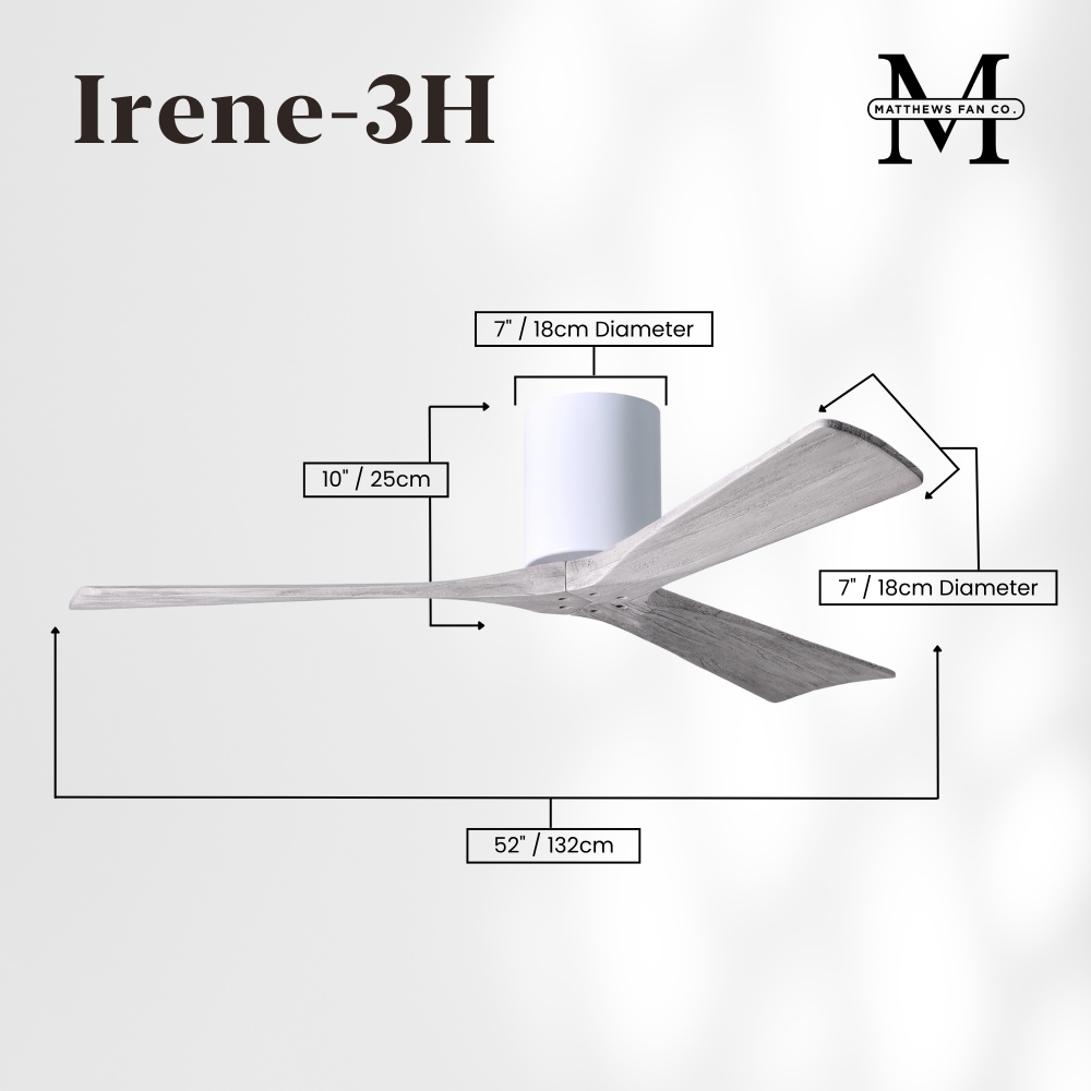 Matthews Fan Company IR3H-WH-LM-52 - Irene-3H - Three Blade Flush Mount Paddle Fan - 52" - Gloss White Finish