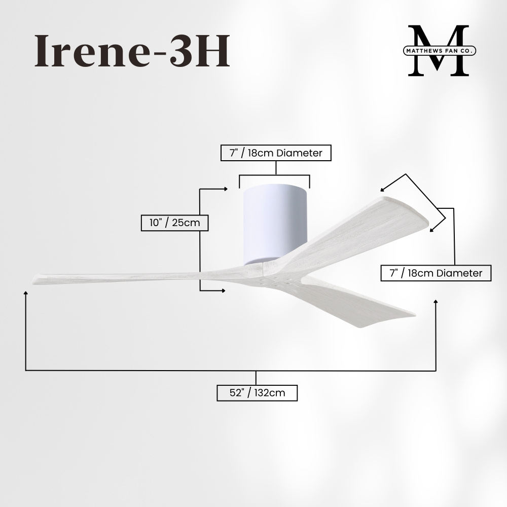 Matthews Fan Company IR3H-WN-LM-52 - Irene-3H - Three Blade Flush Mount Paddle Fan - 52" - Walnut Finish - Light Maple Tone Blades