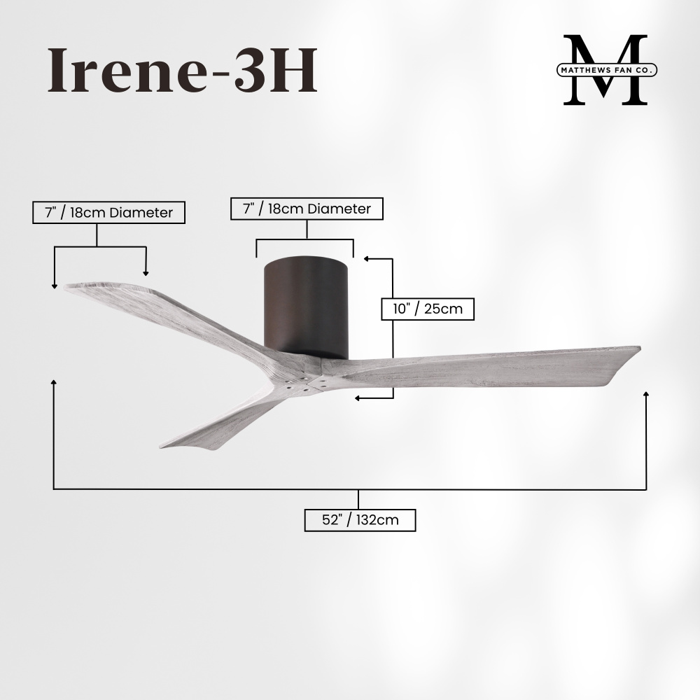 Matthews Fan Company IR3H-BW-BK-52 - Irene-3H - Three Blade Flush Mount Paddle Fan - 52" - Barn Wood Finish - Matte Black Blades