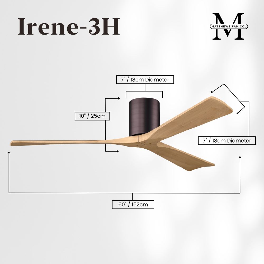 Irene-3H - Three Blade Flush Mount Paddle Fan - 60" - Brushed Bronze Finish