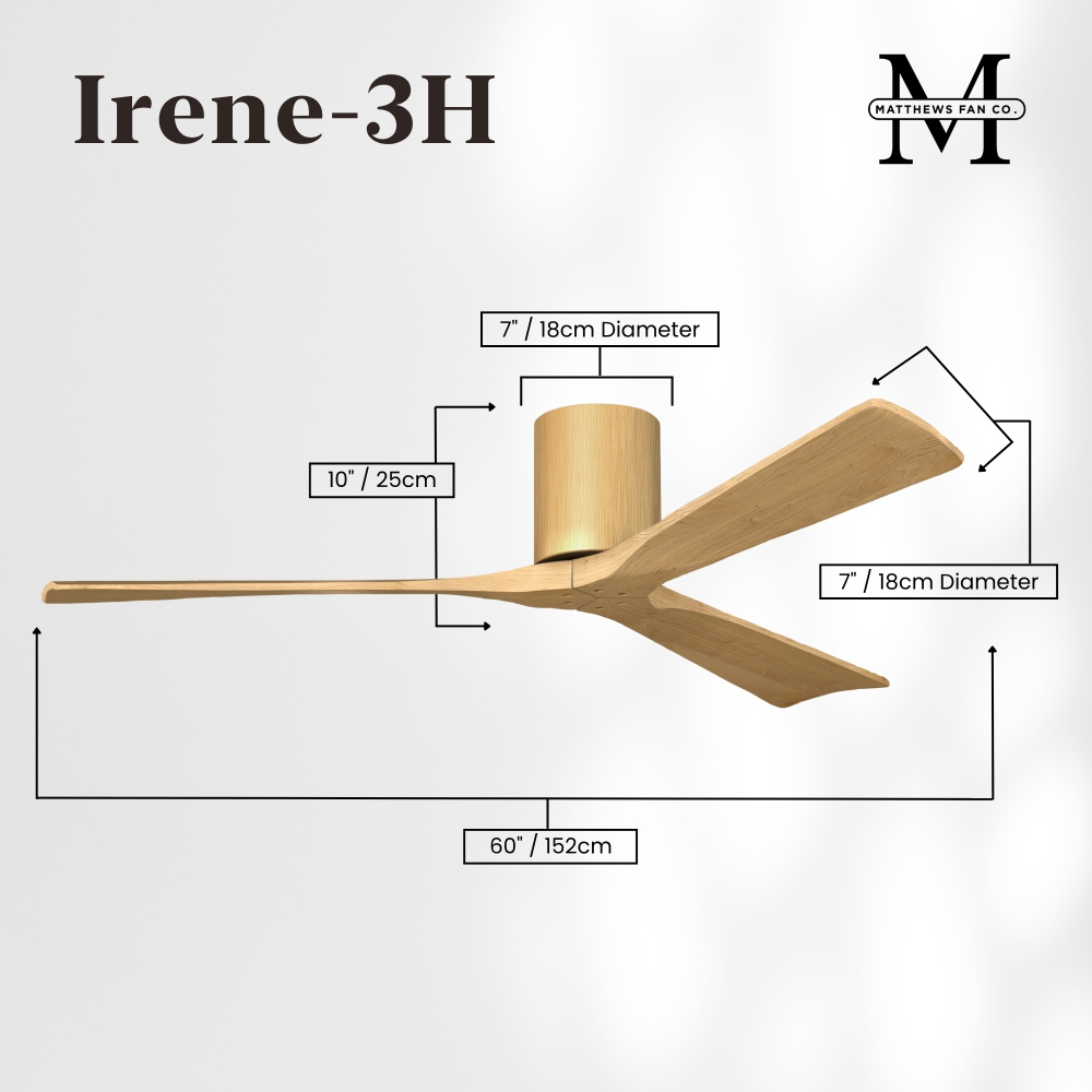 Matthews Fan Company IR3H-LM-LM-42 - Irene-3H - Three Blade Flush Mount Paddle Fan - 42" - Light Maple Tone Finish