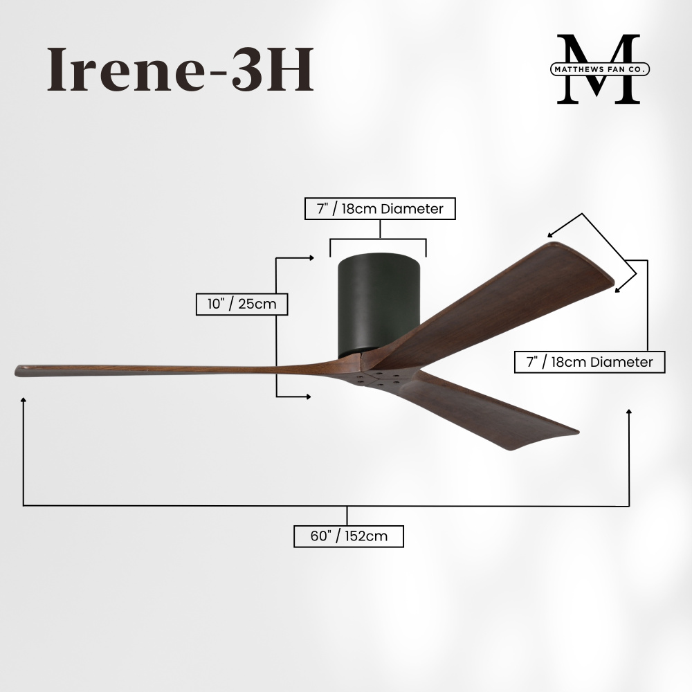 Matthews Fan Company IR3H-WN-WA-60 - Irene-3H - Three Blade Flush Mount Paddle Fan - 60" - Walnut Finish - Walnut Tone Blades