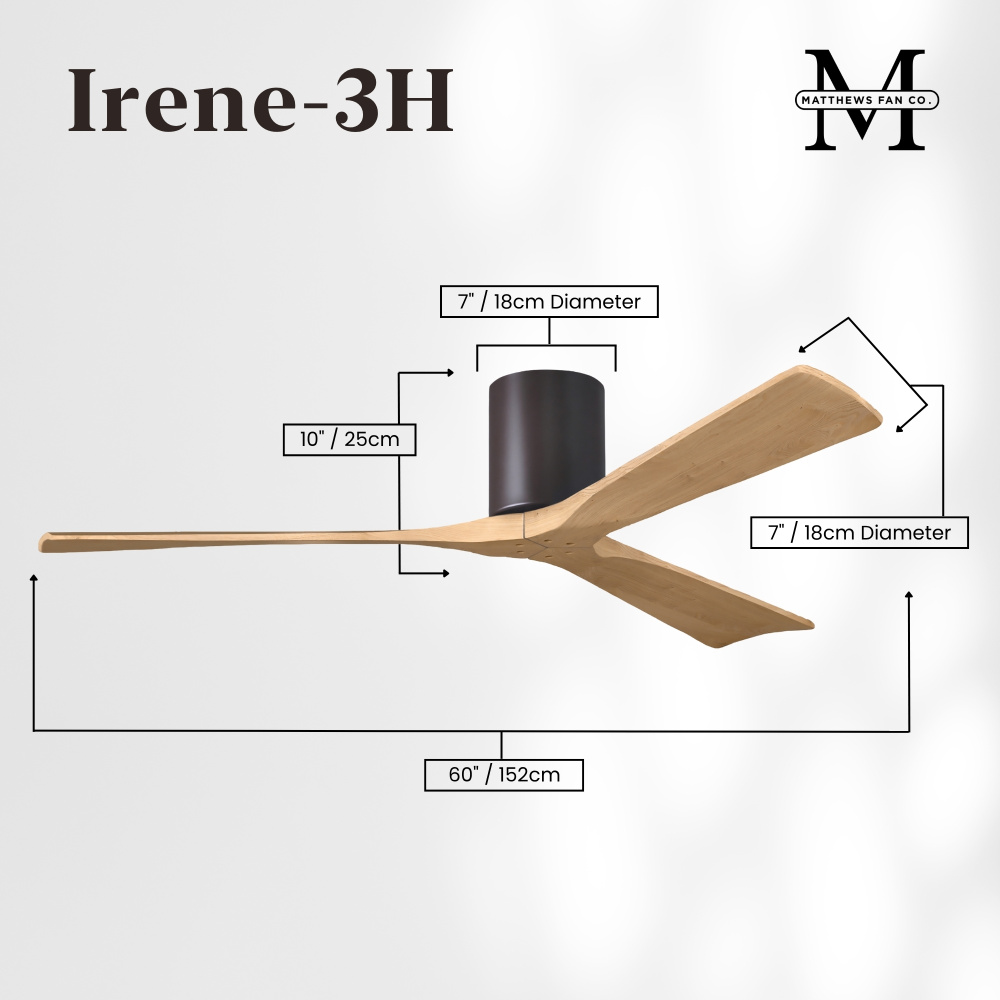 Matthews Fan Company IR3H-WN-LM-42 - Irene-3H - Three Blade Flush Mount Paddle Fan - 42" - Walnut Finish - Light Maple Tone Blades
