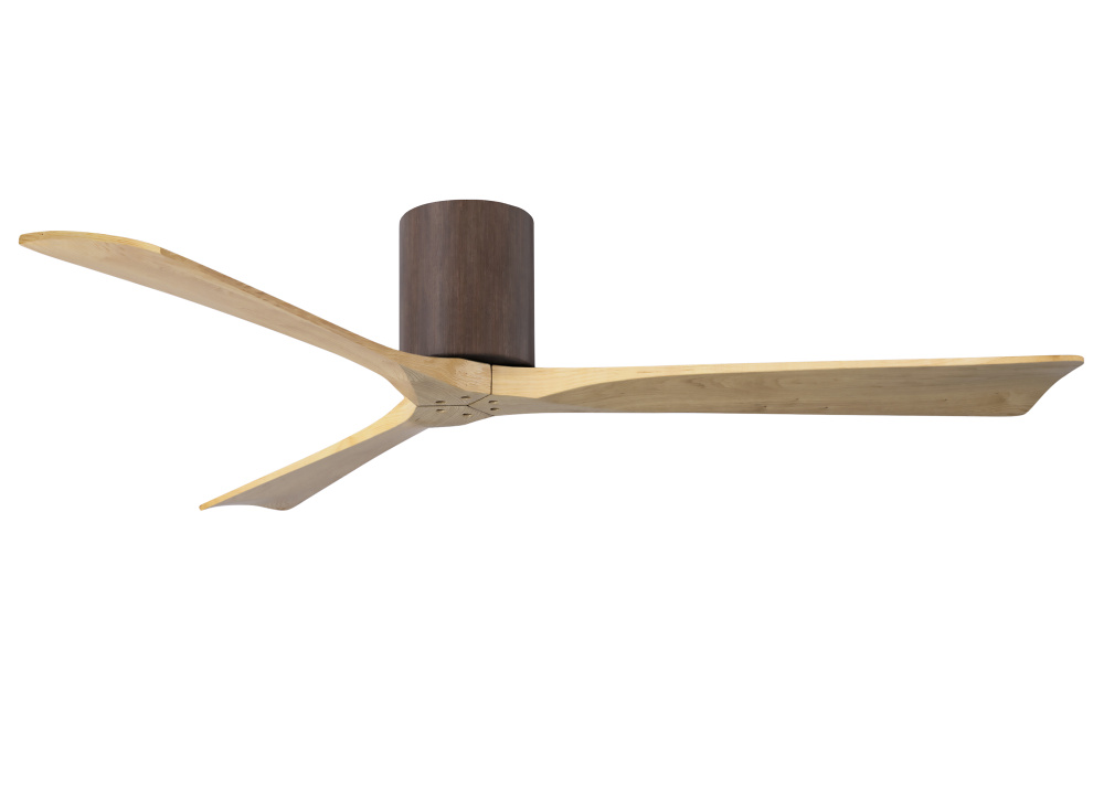 Irene-3H - Three Blade Flush Mount Paddle Fan - 60" - Walnut Finish - Light Maple Tone Blades