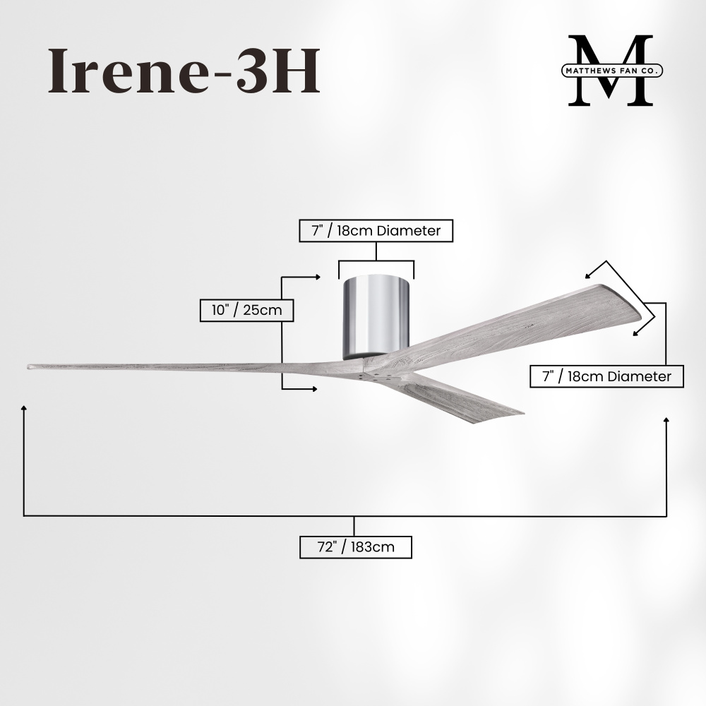 Irene-3H - Three Blade Flush Mount Paddle Fan - 72" - Polished Chrome Finish